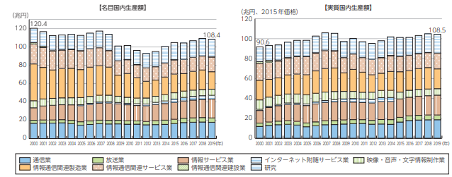そのマイナス分をカバーするほどに「情報サービス」や「インターネット不随サービス業」などが急成長しています。